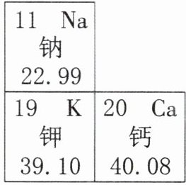 元素的相对原子质量最小。(3)钠、钾和钙在元素分类中都属于