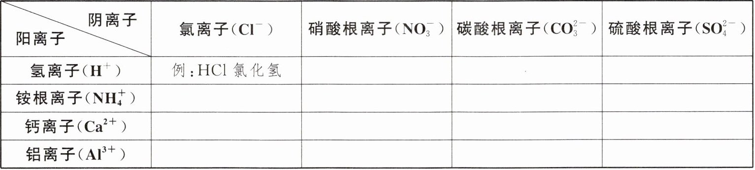 |氢离子($H^{+}$)|例:HCl 氯化氢| | | |