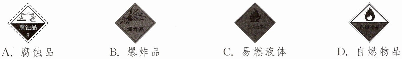 12. (2024·山西)为保护他人和自己的生命财产安全,运输危险化学品火药、汽油、浓硫酸等的车辆,必须使用重要的警示标志,其中在运输火药的车辆上应该张贴的是 (