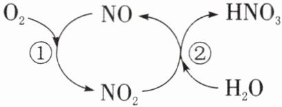 D.反应②的化学方程式为$NO_{2}+H_{2}O= HNO_{3}+NO$