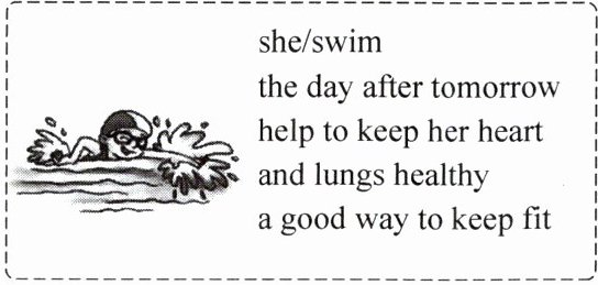 【解析】:题目要求根据图片信息仿照示例编写对话,考查一般将来时“be going to”结构的运用以及询问和回答原因的表达。需要结合各图片提示的人物、动作、时间及原因等关键信息来组织对话。