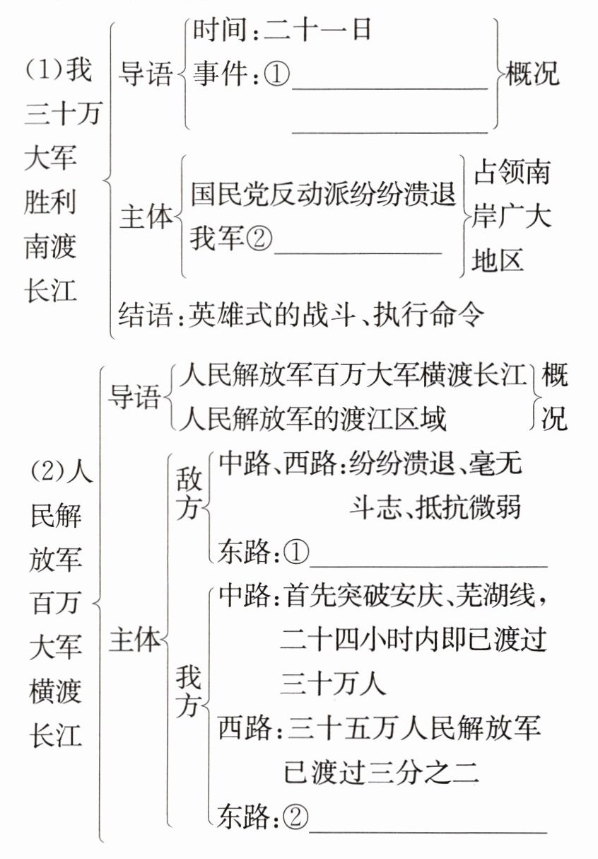 (2)①抵抗较为顽强 ②各军已大部渡过南岸