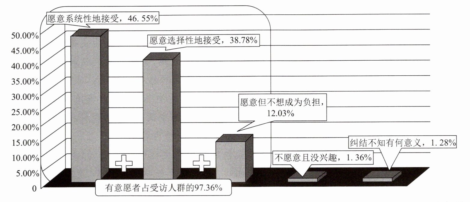 D. 材料三认为,绝大多数受访者都愿意接受传统文化教育。