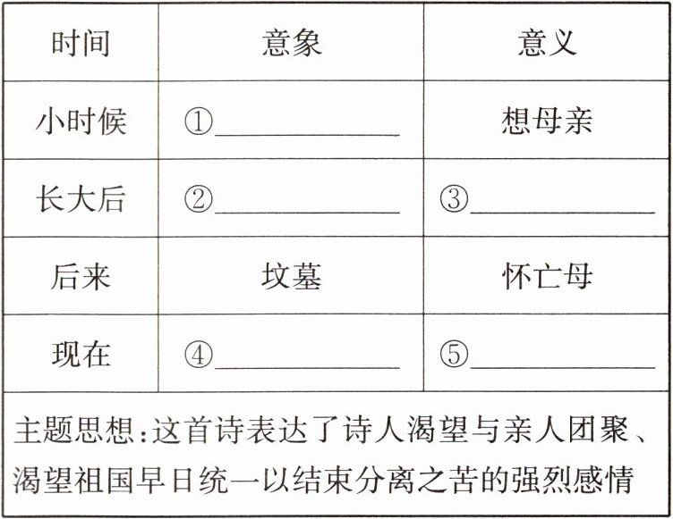 主题思想:这首诗表达了诗人渴望与亲人团聚、渴望祖国早日统一以结束分离之苦的强烈感情
