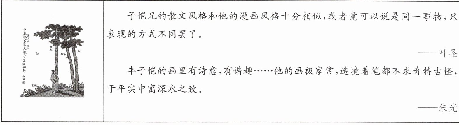 | | 丰子恺的画里有诗意,有谐趣……他的画极家常,造境着笔都不求奇特古怪,却于平实中寓深永之致。——朱光潜 |______
