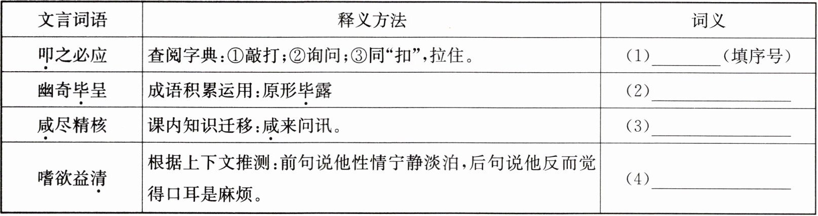 |咸尽精核|课内知识迁移:咸来问讯。|(3)______|