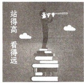 (1)示例:站在书籍上,视野更开阔,我们可以看得更远,所以我们要用知识来武装自己,改变自己的命运,只有不断读书,才能不断拓宽自己的眼界。(2分)