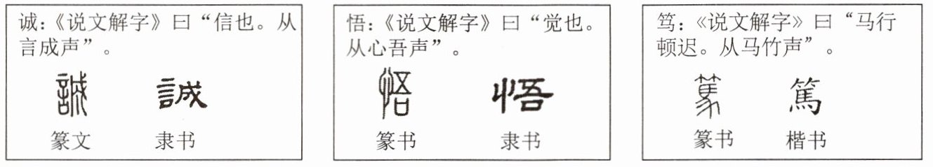 |诚:《说文解字》曰"信也。从言成声"。|悟:《说文解字》曰"觉也。从心吾声"。|笃:《说文解字》曰"马行顿迟。从马竹声"。|