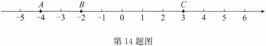 (2)将点$A向右移动4个单位长度后得到点A'$,则$A',B,C$三个点表示的数按从小到大的顺序排列是