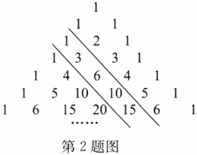 2. 如图被称为“杨辉三角”. 图中两平行线之间的一列数:1,3,6,10,15,…,我们把第一个数记为 $ a_{1} $,第二个数记为 $ a_{2} $,第三个数记为 $ a_{3} $,…,第 $ n $ 个数记为 $ a_{n} $,则 $ a_{4}+a_{200}= $______