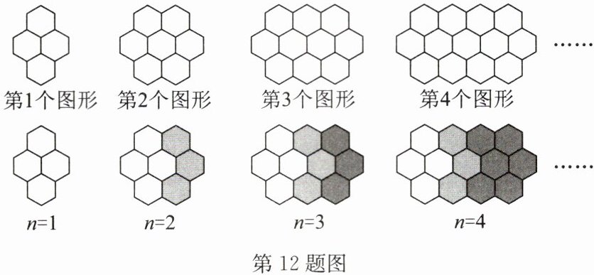 12. 【问题提出】观察一下生活中小蜜蜂修建的六边形蜂巢,它们有一定的规律,如何用含n的式子表示第n个图形的蜂巢中六边形的总数呢?