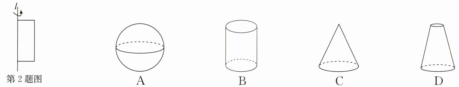 2. 如图,将长方形绕着它的一条边所在的直线l旋转一周,可以得到的立体图形是(