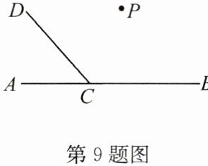 9. 如图,射线CD的端点C在直线AB上,按照下面的要求画图,并标出相应的字母. 过点P画直线PE,交AB于点E,过点P画射线PF交射线CD于点F,画线段EF,PC,两条线段交于点O.