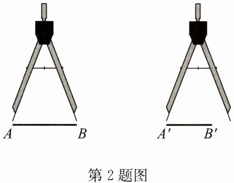 2. (2024·阜宁县期末)如图,用圆规比较两条线段AB和$ A'B' $的长短,其中正确的是(