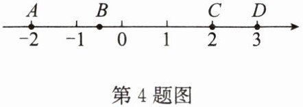 4. 如图,数轴上有A,B,C,D四个点,其中所对应的数的绝对值最大的点是(