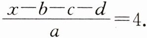 $\frac {x-a-b-c}{d}+\frac {x-a-b-d}{c}+\frac {x-a-c-d}{b}+\frac {x-b-c-d}{a}= 4$。