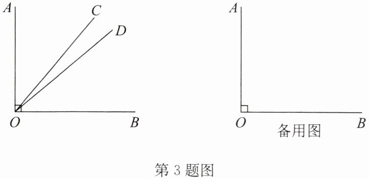 3. 已知$∠AOB= 90^{\circ }$,射线OC,OD在$∠AOB$的内部(OC与OD不重合),且$∠AOC= ∠BOD$。将射线OA沿射线OC翻折,得到射线$OA'$;将射线OB沿射线OD翻折,得到射线$OB'$($OA'与OB'$不重合)。