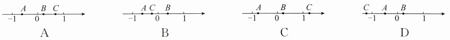 6. 已知数轴上的点A,B分别表示数a,b,其中-1<a<0,0<b<1.若a×b= c,数c在数轴上用点C表示,则点A,B,C在数轴上的位置可能是 (