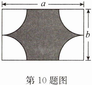 10. 如图,长方形的长为a,宽为b.现以长方形的四个顶点为圆心,宽的一半为半径在四个角上分别画出四分之一圆.