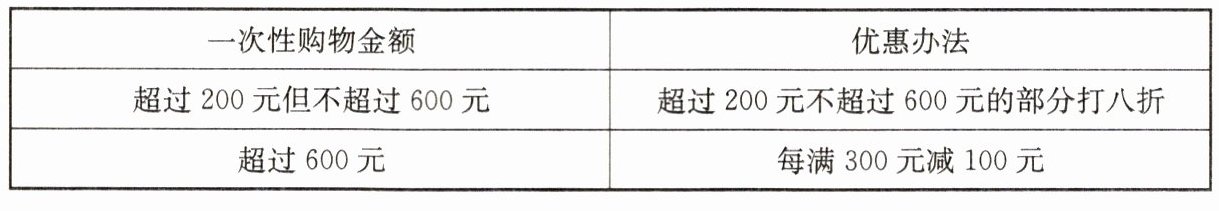 (1)小博妈妈一次性购物x元(200<x≤600),她实际付款