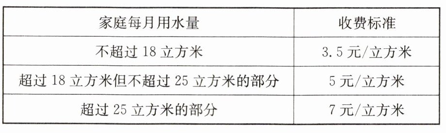 3. 某市采用分段收费的方式按月计算每户家庭的水费,收费标准如下表: