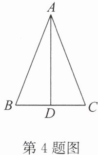 4.如图,在△ABC中,AD⊥BC,D为BC的中点,有下列结论:①△ABD≌△ACD;②AB= AC;③∠B= ∠C;④AD是△ABC的一条角平分线。其中正确的有(