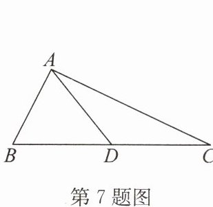 7.(2024·东台期中)如图,AD是$△ABC$中 BC 边上的中线.若$AB= 5,AC= 9$,则 AD 的取值范围是 (