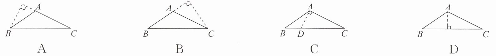 1. (2024·滨海县月考)在$\triangle ABC$中,$∠A$是钝角,下列选项中画$AC$边上的高线正确的是(