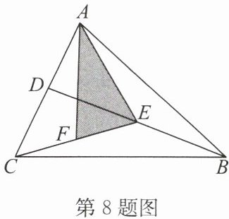8. (2024·东台期中)如图,$BD是\triangle ABC$的中线,$E$,$F分别为BD$,$CE$的中点,若$\triangle AEF的面积为3cm^{2}$,则$\triangle ABC$的面积是____