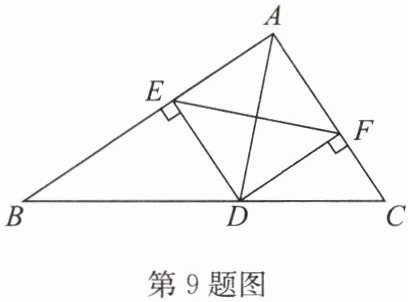 9. 如图, $ AD $ 是 $ \triangle ABC $ 的角平分线, $ DE $, $ DF $ 分别是 $ \triangle ABD $ 和 $ \triangle ACD $ 的高. 求证: $ AD $ 垂直平分 $ EF $.