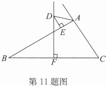 11. 如图, 在 $ \triangle ABC $ 中, $ AB > AC $, $ BC $ 的垂直平分线 $ DF $ 交 $ \triangle ABC $ 的外角平分线 $ AD $ 于点 $ D $, $ DE \perp AB $ 于点 $ E $. 求证: $ BE - AC = AE $.
