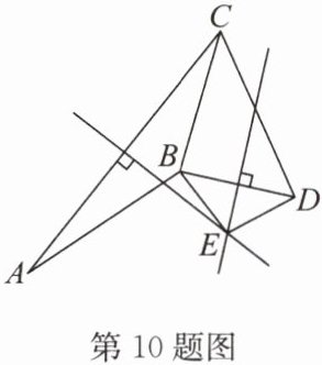 10. 如图, $ AB = CD $, 线段 $ AC $ 的垂直平分线与线段 $ BD $ 的垂直平分线相交于点 $ E $. 求证: $ \angle ABE = \angle CDE $.
