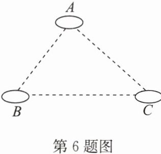 6. (2024·东台月考)如图, 有 $ A $, $ B $, $ C $ 三个居民小区的位置成三角形, 现决定在三个小区之间修建一个购物超市, 使超市到三个小区的距离相等, 则超市应建在 (