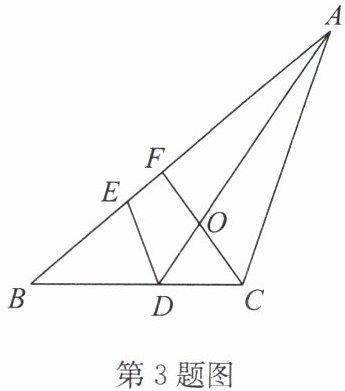 3. 如图,在 $\triangle ABC$ 中,$AC = 6\mathrm{cm}$,$AB = 9\mathrm{cm}$,$D$ 是边 $BC$ 上一点,$AD$ 平分 $\angle BAC$,在 $AB$ 上截取 $AE = AC$,连接 $DE$,已知 $DE = 2\mathrm{cm}$,$BD = 3\mathrm{cm}$。