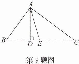 9. 如图,$AD$,$AE分别是\triangle ABC$的高和中线,$AB = 6cm$,$AC = 8cm$,$BC = 10cm$,$∠CAB = 90^{\circ}$.求:(1)$AD$的长;