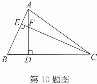 10. (2024·盐都区月考)如图,在$\triangle ABC$中,$AB = 6cm$,$BC = 10cm$,$CE⊥AB$,$AD⊥BC$,$AD和CE交于点F$,$∠B = 67^{\circ}$.