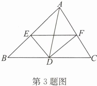 3. 如图,AD是△ABC的中线,点E,F分别在边AB,AC上,且DE⊥DF。求证:BE+CF>EF。