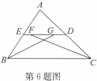6. (2024·阜宁县期中)如图,在$\triangle ABC$中,$DE// BC,∠ABC和∠ACB的平分线分别交ED于点G,F$,若$FG= 2,ED= 5$,则$BE+DC$的值为(