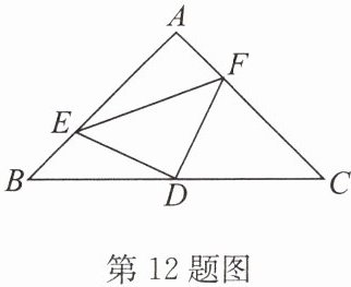 12. 如图,在$\triangle ABC$中,$∠A= 90^{\circ },AB= AC,D是斜边BC$的中点,点$E,F分别在线段AB,AC$上,且$∠EDF= 90^{\circ }$.