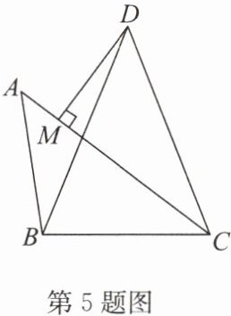 5. 如图,在$\triangle DBC$中,$DB = DC$,$A为\triangle DBC$外一点,且$\angle BAC = \angle BDC$,$DM\perp AC于点M$,求$\frac{AC - AB}{AM}$的值.