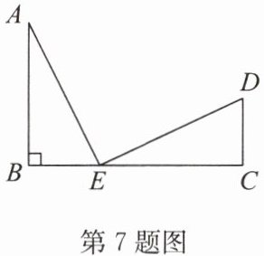 7. 如图,$E为线段BC$上一点,$AB \perp BC$,$\triangle ABE \cong \triangle ECD$,判断$AE与DE$的关系,并证明你的结论.