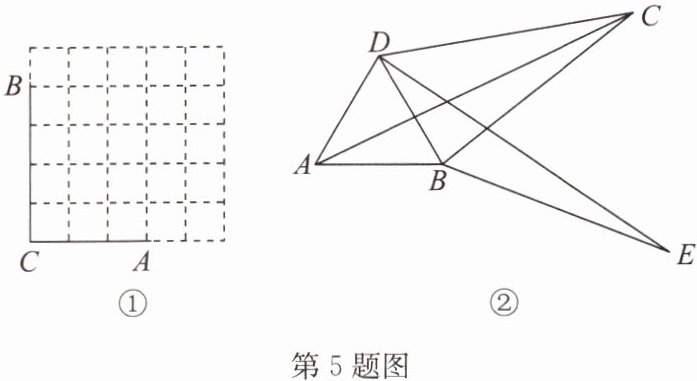 (2)如图②,以△ABC的边AB为边作等边△ABD,∠CBE= 60°,且BE= BC,连接DE,DC,∠DCB= 30°. 求证:$DC^2+BC^2= AC^2,$即四边形ABCD是勾股四边形.