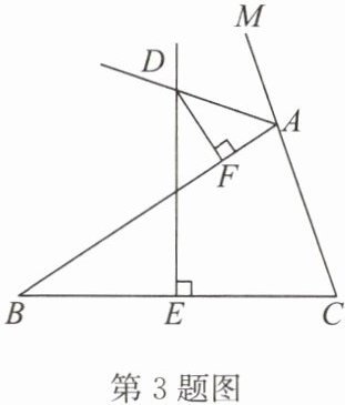 3. 如图,△ABC的边BC的垂直平分线DE交△ABC的外角平分线AD于点D,DF⊥AB于点F,且AB>AC,试探究BF,AC,AF之间的数量关系,并说明理由。