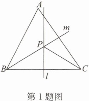 1. 如图,在锐角三角形ABC中,直线l为BC的垂直平分线,射线m为∠ABC的平分线,l与m相交于点P。若∠A= 60°,∠ACP= 24°,则∠ABP的度数为 (