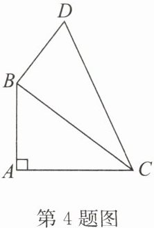 4. 如图,在四边形$ABDC$中,$\angle A = 90^{\circ}$,$AB = 9$,$AC = 12$,$BD = 8$,$CD = 17$.