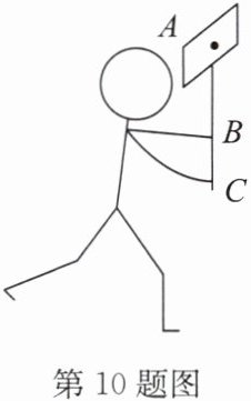 10. (2024·阜宁县月考)如图是小明在学校运动会开幕式上竖直举着班牌匀速前进时的情形,将班牌视为杠杆.已知$AB = 40cm$,$BC = 20cm$,班牌受到作用在A点的水平向左的空气阻力为10N.若以图中B点作为支点,手对C点施加的动力为