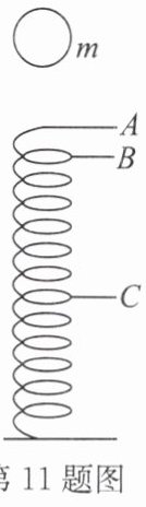 11. 如图所示,质量为m的小球从静止下落,落在与A点等高、竖直放置且静止的轻弹簧上,到达B点时小球的重力与弹簧的弹力大小相等,C点是小球到达的最低点(不计空气阻力). 下列说法正确的是 (