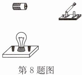 8. 在“怎样让一个灯泡亮起来”的活动中,小华同学用导线将图示元件连接起来的过程中,下列说法错误的是(