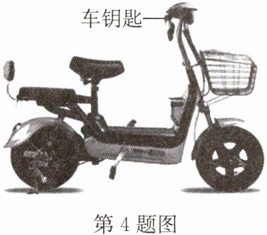 4. 如图所示为人们所喜爱的电动自行车,它具有轻便、节能、环保等特点。只要将图中车钥匙插入锁孔并顺时针旋转一下,车子就通电了,但不会行驶。车钥匙其实就是一个