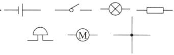 干电池____,开关____,电灯____,电阻____,电铃____,电动机____,交叉相连的导线____。